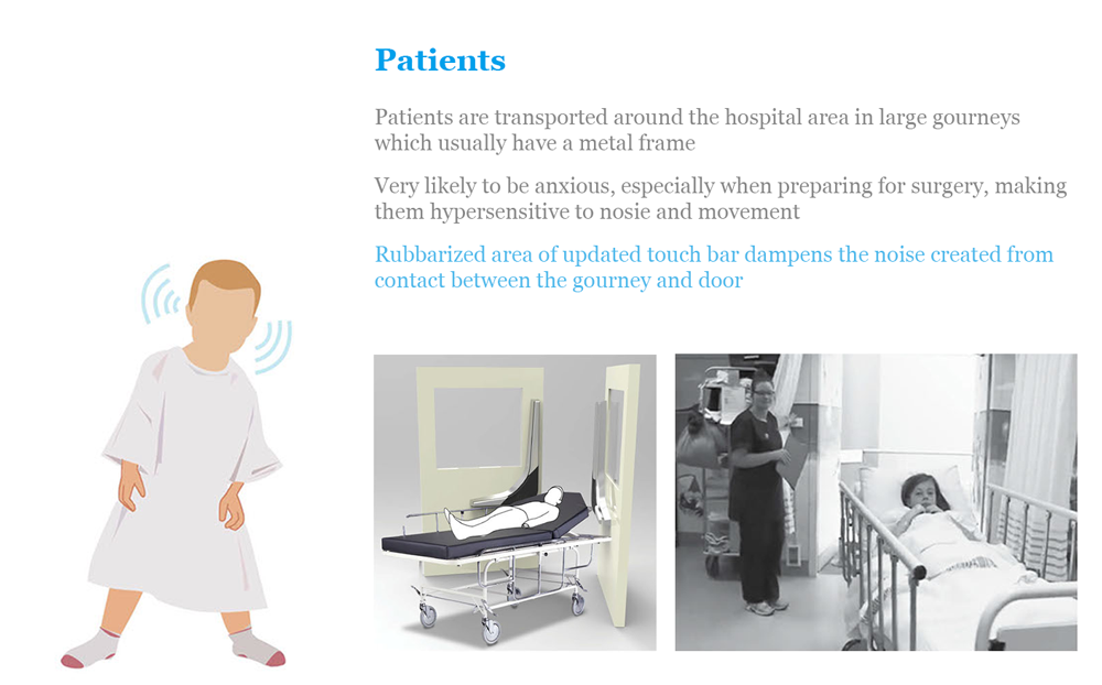 Additionally, we looked at how patients on stretchers are transported throughout the hospital environment, and used the patterns associated with their movement to better inform our new touch bar design.