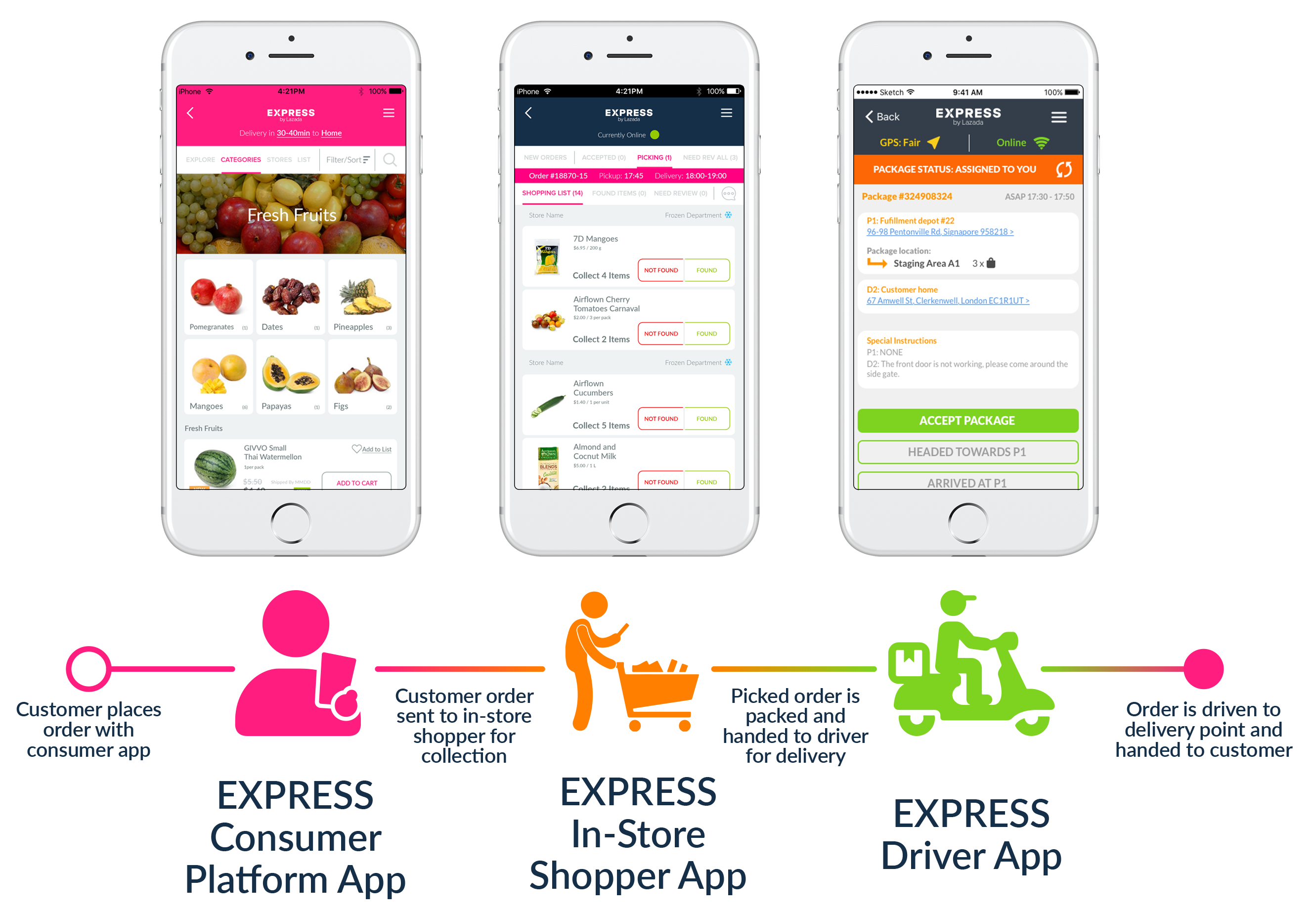 In mid-2017, I was involved with the development of a general ecommerce platform that was to be used to enable same day delivery for Lazada’s EXPRESS DELIVERY service. This platform ended up taking the form of three connected apps which enabled communication between the various parties involved with completing same-day deliveries for EXPRESS.