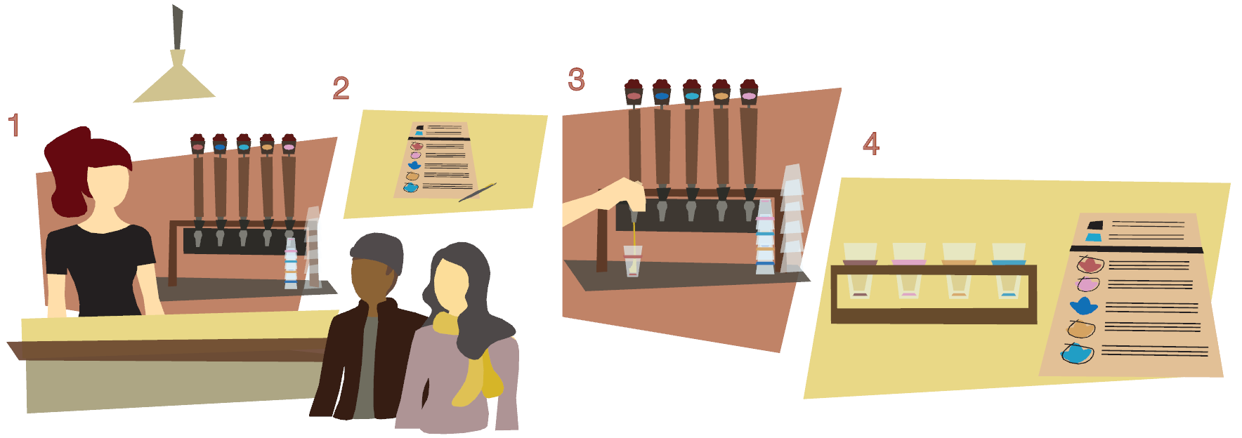 Customers used a provided sheet to indicate which flavor they wanted to try. Each flavor had an associated color which had a corresponding tap handle.