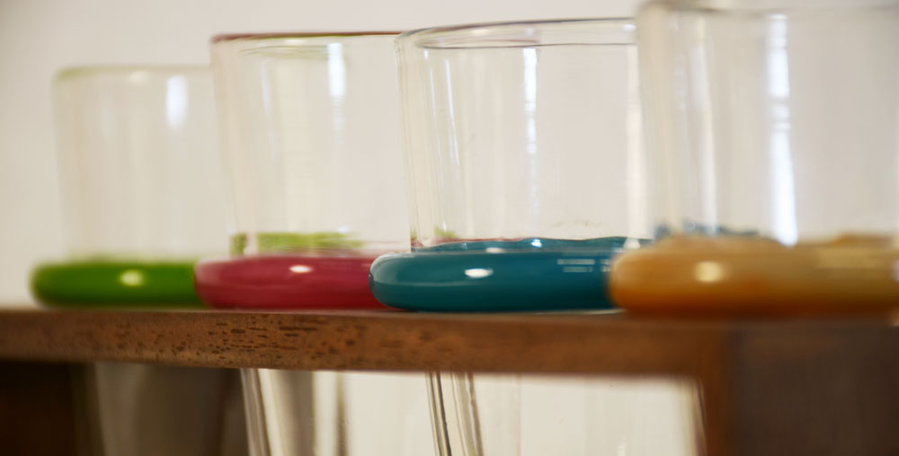 Using color as a flavor indicator makes it easier for the customer to remember which flavor was poured into each glass.